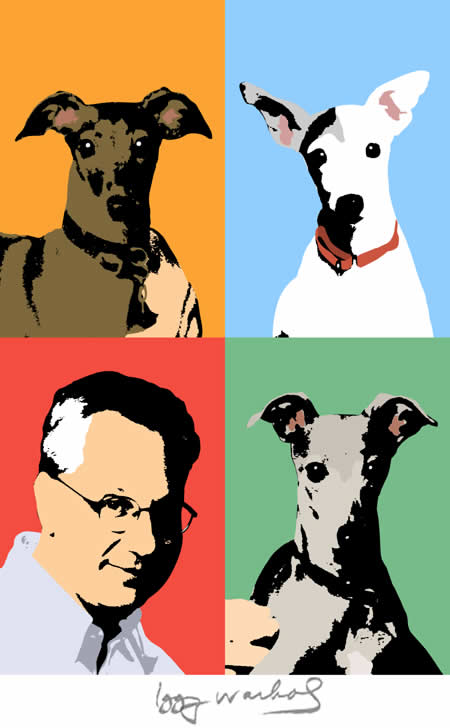 Maranella, Snowflake, and LaPortia, along with their dad, in a very rare original portrait by Iggy Warhol